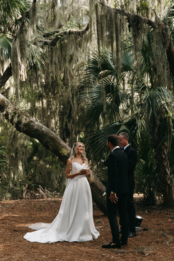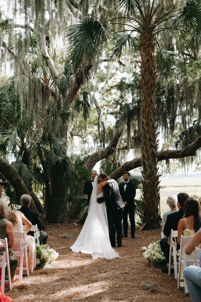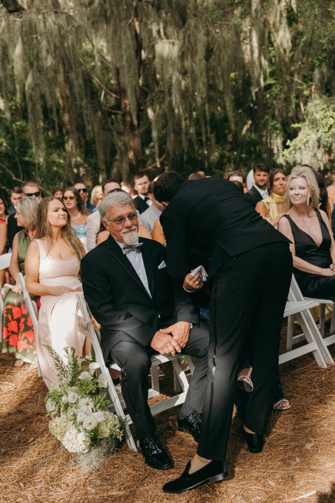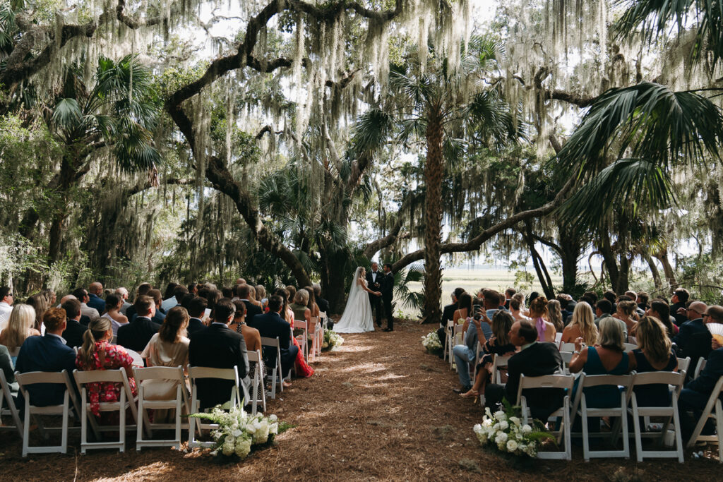 The ceremony space at Walker’s Landing began to fill up with friends and family as the sun beamed through the Spanish moss. Their ceremony was perfect–calm, tearful, and full of laughter as Sean and Dalton became one under the canopied trees of Walker’s Landing.
