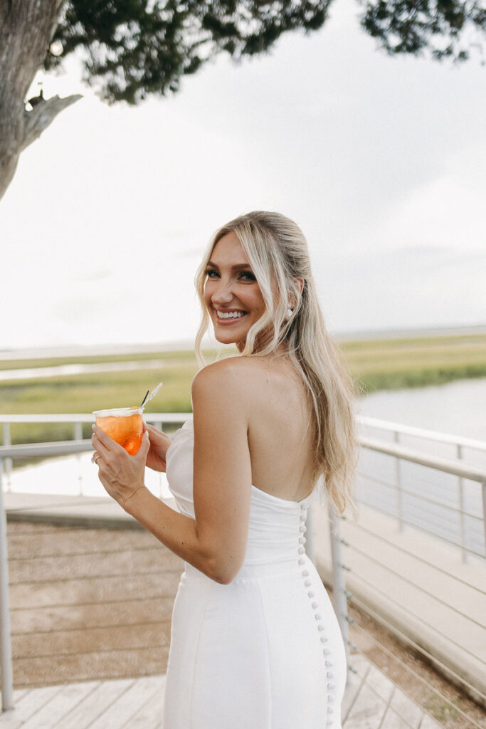 Walker’s Landing has the most incredible space for cocktail hour. Their wrap around wooden deck faces west and overlooks the beautiful marshland that North Florida has to offer. This day was particularly stunning–a few clouds rolled in to block out any direct sun and gave everyone some minor relief from the heat. Just wait until you see the sunset from their day!