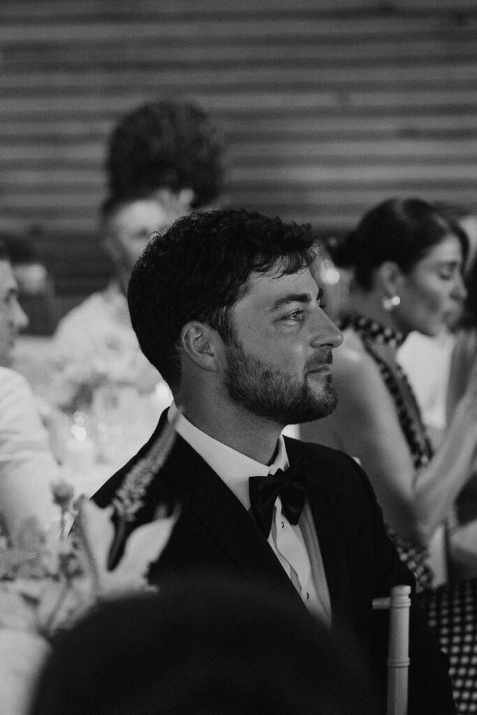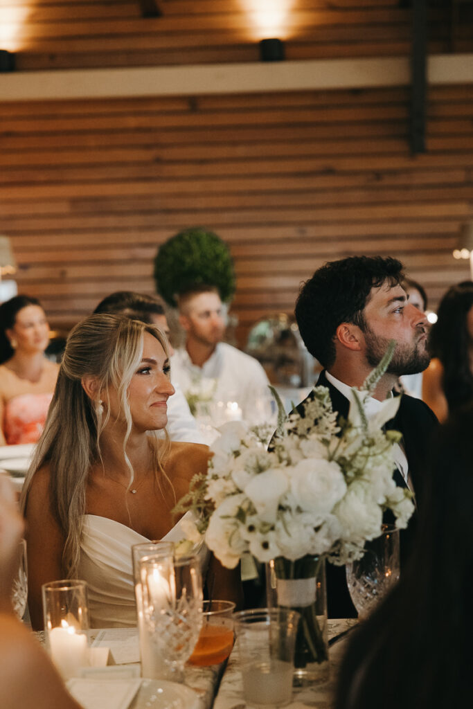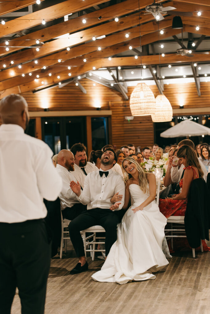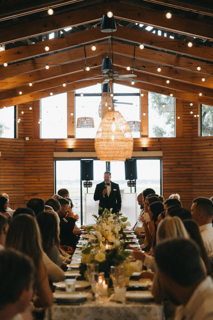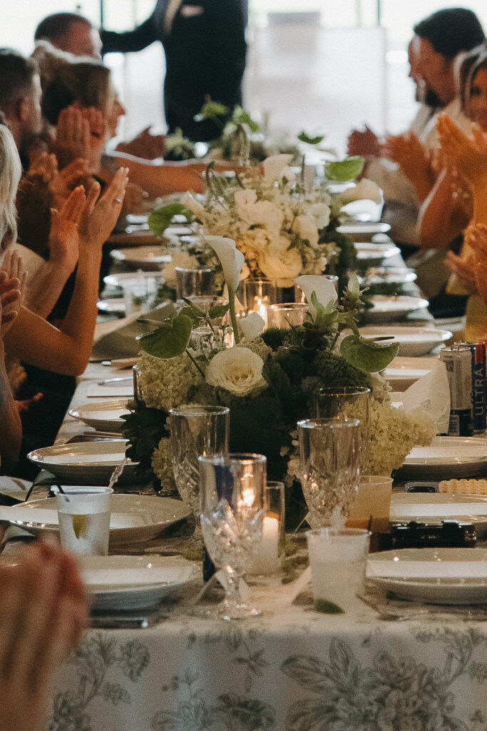 As cocktail hour wrapped up, Sean and Dalton’s guests were ushered into the reception space at Walker’s Landing for dinner, toasts, and speeches. I loved that Sean and Dalton stood by the door, giving everyone the opportunity to say hello (it was so fun watching them interact with their guests!)
