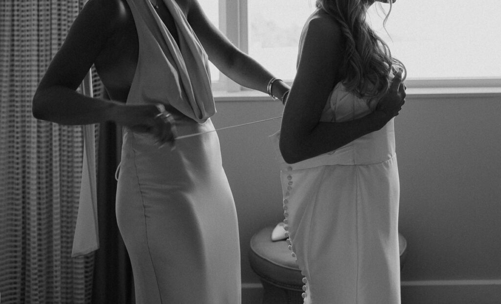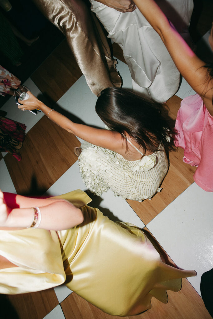 After I stole Sean and Dalton away for a few pre ceremony portraits, they headed back into the reception space where they waited alongside the people they’d be walking down the aisle with. Sean and her bridesmaids had an impromptu moment on the dance floor to hype each other up and calm any pre wedding jitters. I think it worked pretty well.