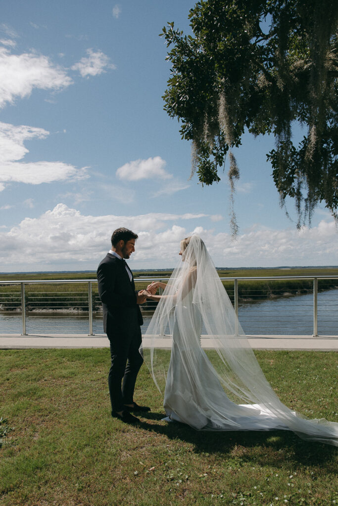 While guests enjoyed the beginning of cocktail hour, we took the opportunity to take a few portraits of Sean and Dalton as a newly married couple. Some of the best parts of Walker’s Landing are the abundance of shaded areas, a myriad of trees, and an incredible view of the marsh that surrounds the property. We took about 20 minutes before Sean and Dalton joined their cocktail hour.