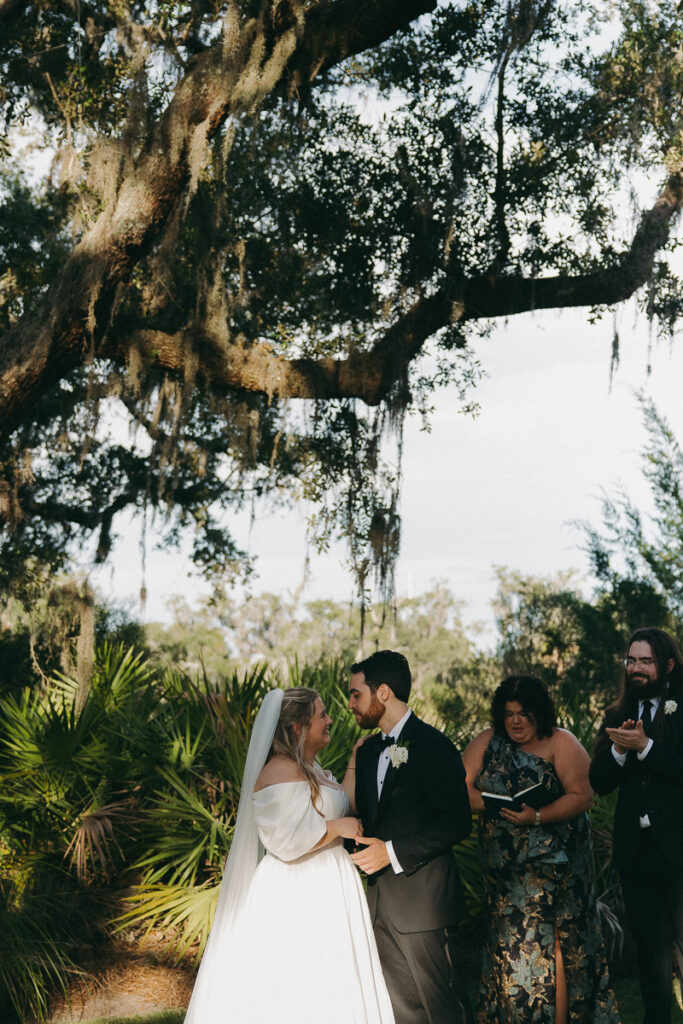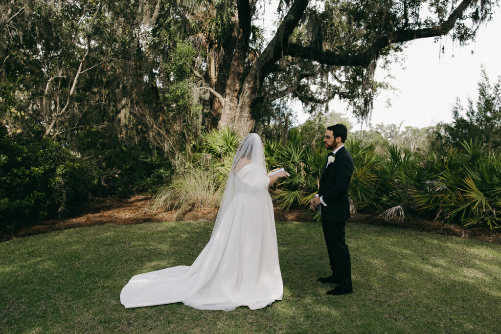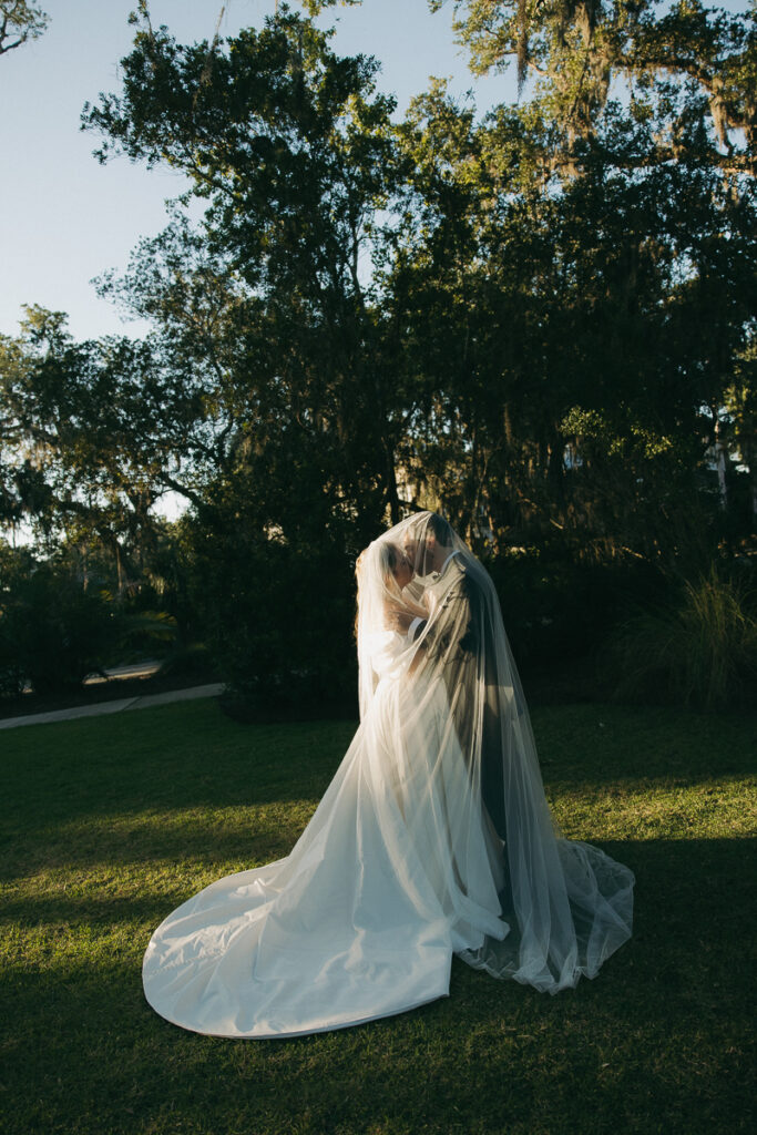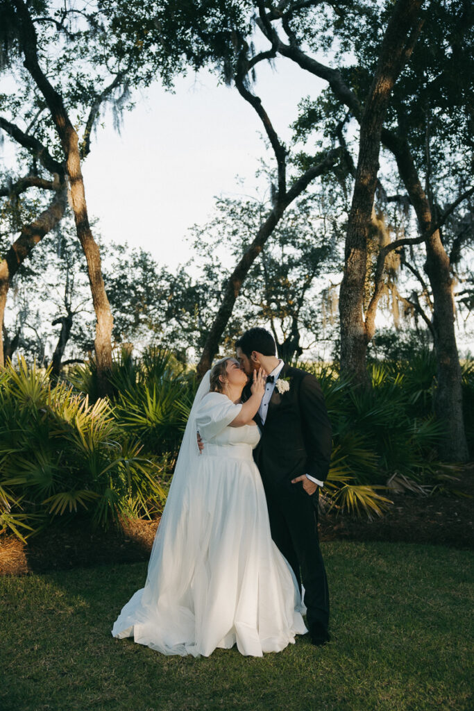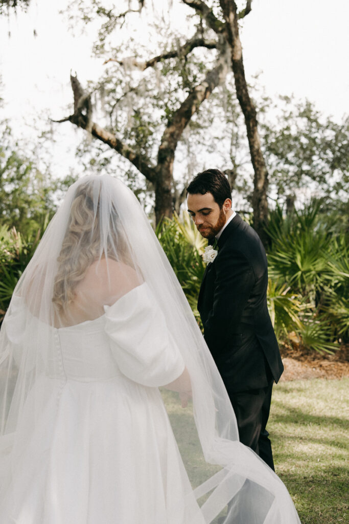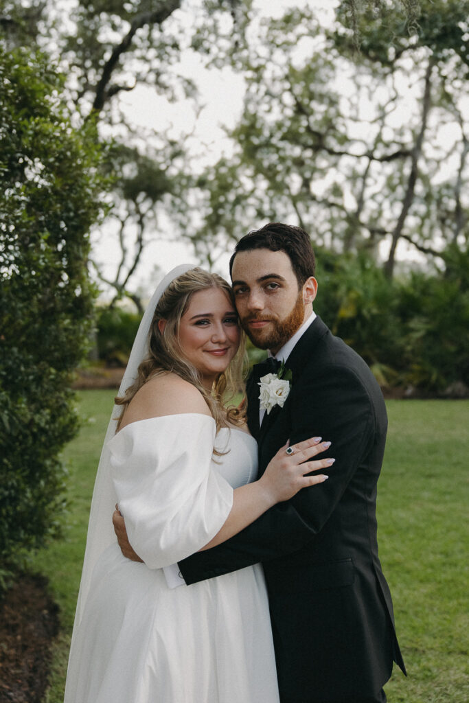 This Oyster Bay Yacht Club wedding was one for the books. Nestled in the marshy flatlands of Fernandina Beach, Florida lies Oyster Bay Yacht Club—an all inclusive wedding venue with sweeping views of the St. Mary’s river and canopied oak trees dripping in Spanish Moss. It boasts a magic like no other, and was the perfect setting for Daphne + Peter’s moody and romantic wedding day.