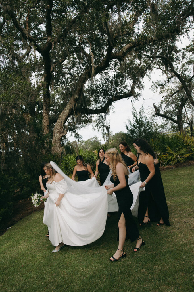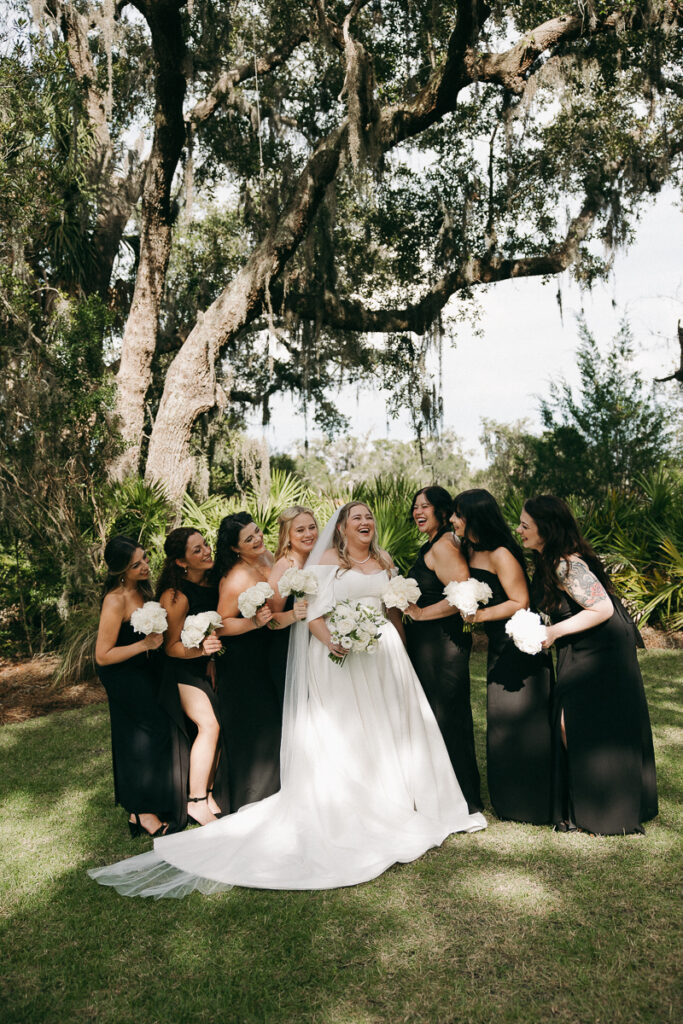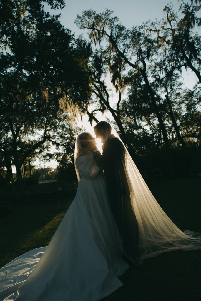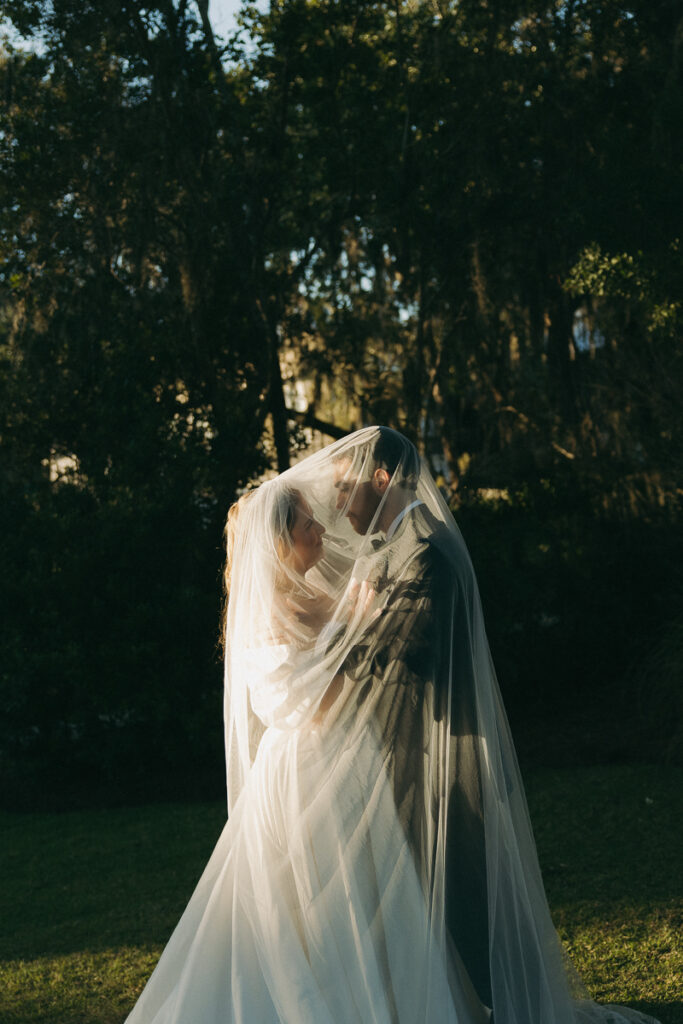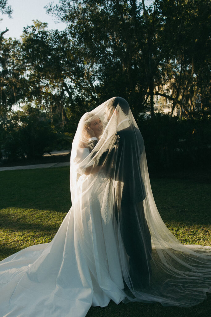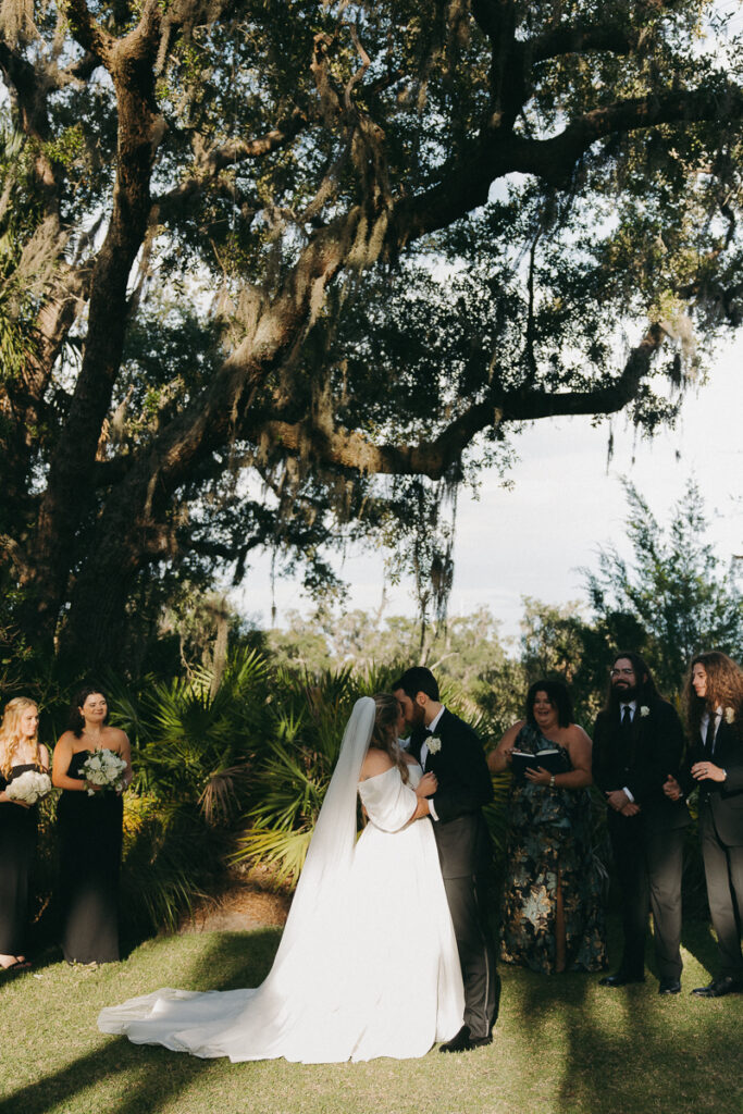 This Oyster Bay Yacht Club wedding was one for the books. Nestled in the marshy flatlands of Fernandina Beach, Florida lies Oyster Bay Yacht Club—an all inclusive wedding venue with sweeping views of the St. Mary’s river and canopied oak trees dripping in Spanish Moss. It boasts a magic like no other, and was the perfect setting for Daphne + Peter’s moody and romantic wedding day.