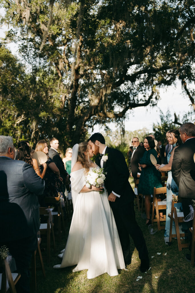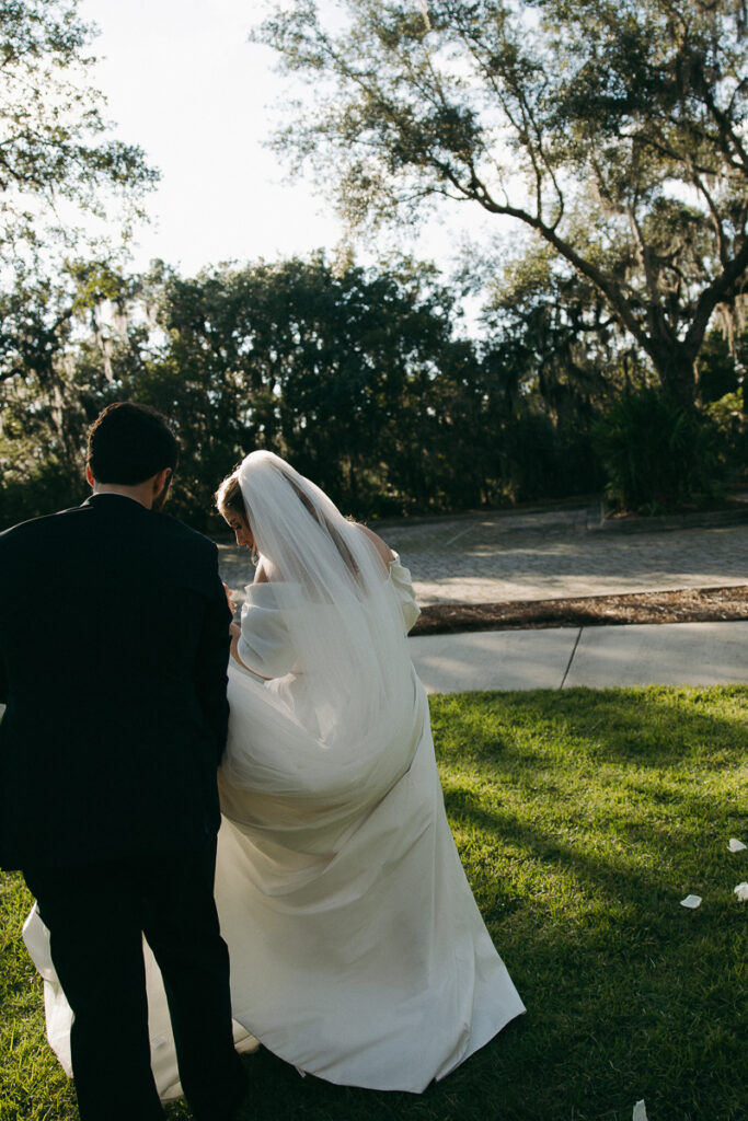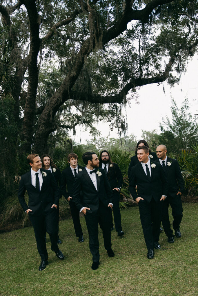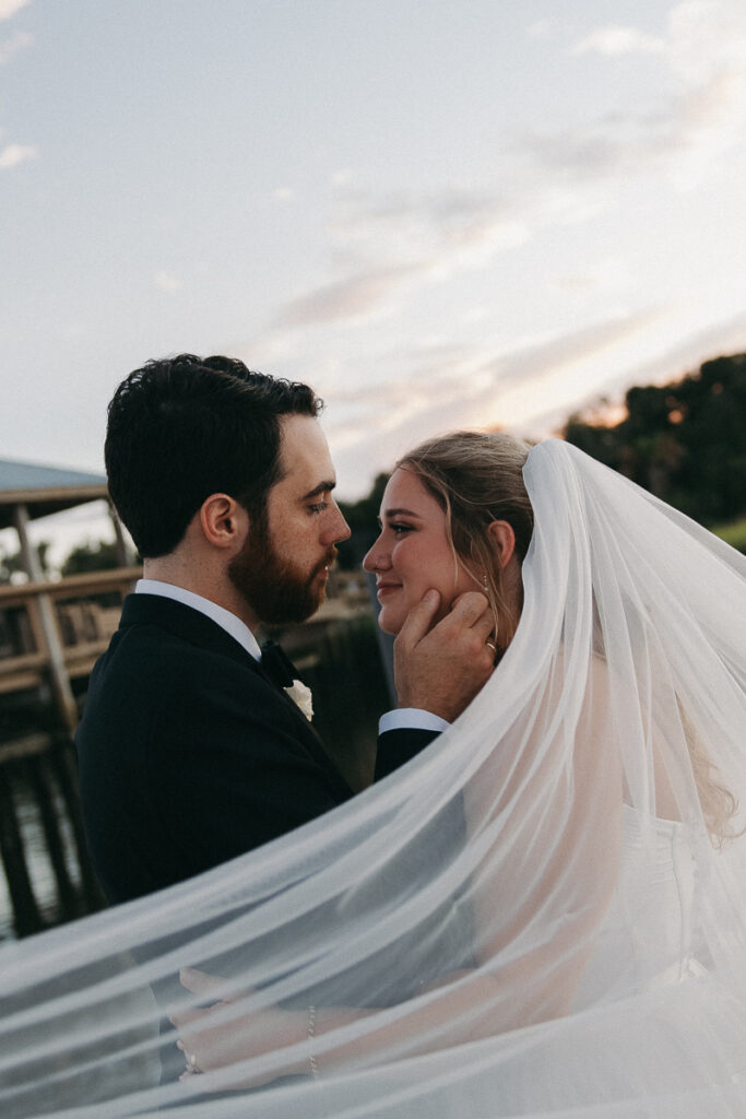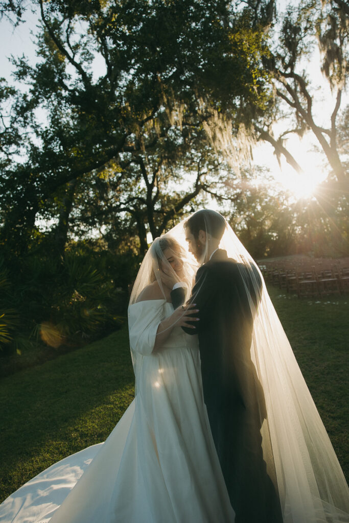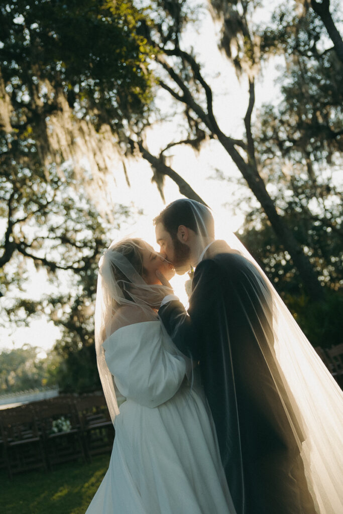 This Oyster Bay Yacht Club wedding was one for the books. Nestled in the marshy flatlands of Fernandina Beach, Florida lies Oyster Bay Yacht Club—an all inclusive wedding venue with sweeping views of the St. Mary’s river and canopied oak trees dripping in Spanish Moss. It boasts a magic like no other, and was the perfect setting for Daphne + Peter’s moody and romantic wedding day.