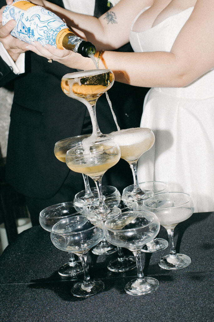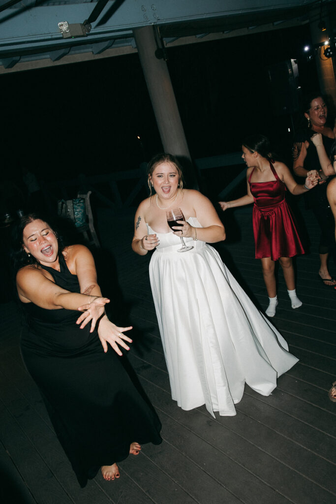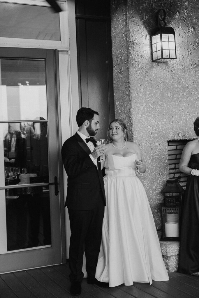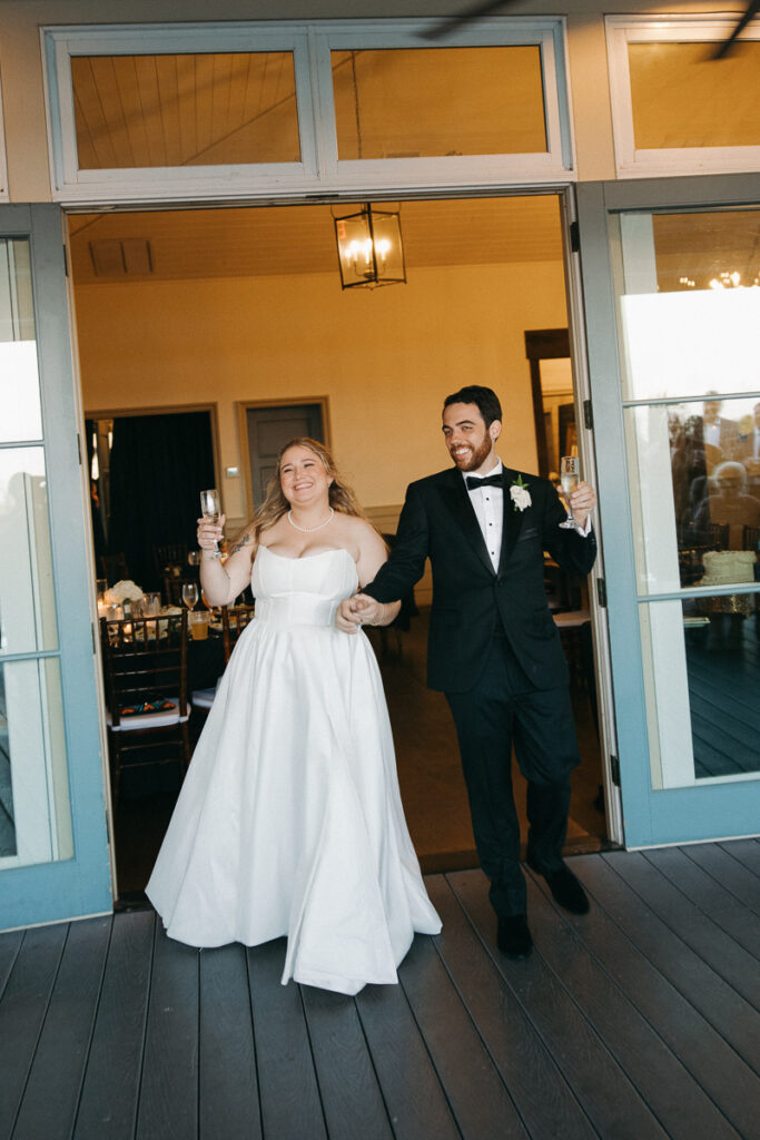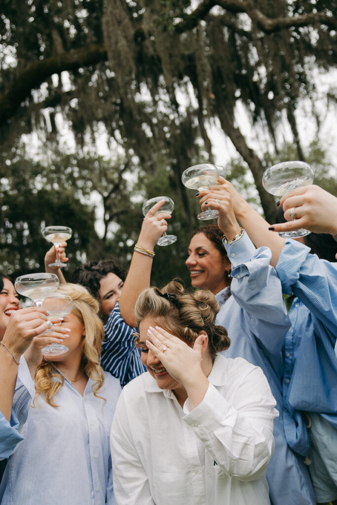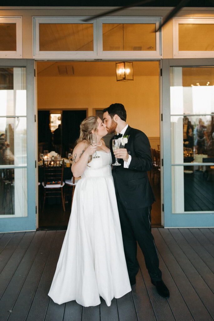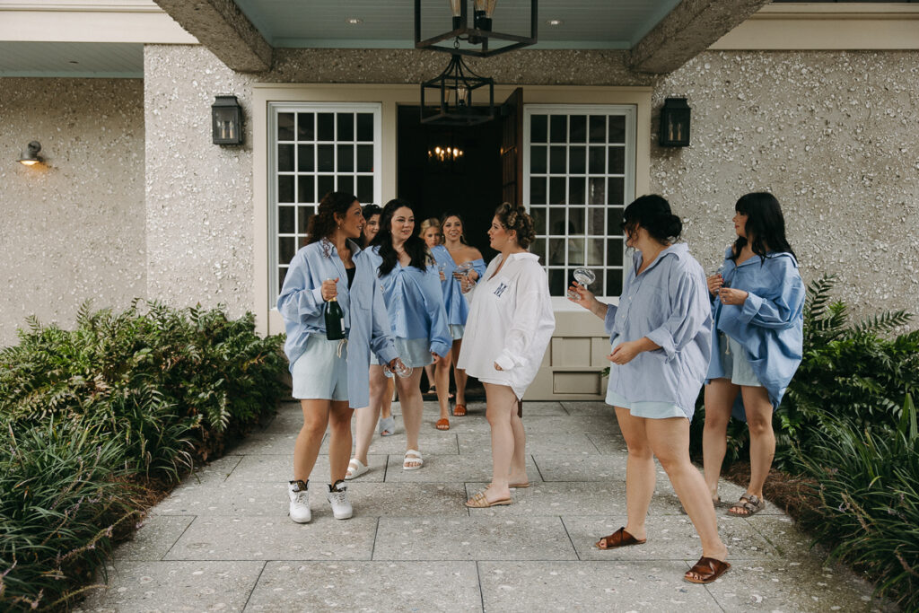 Before Peter arrived, Daphne and her bridesmaids followed me out into the grassy courtyard of Oyster Bay Yacht Club to take a few portraits together in their getting ready attire. Daphne got her bridesmaids oversized men’s button down shirts with their names embroidered on the sleeve, a personal touch that added so much. We took a few photos of them doing a champagne cheers to usher in this new season of life for Daphne and Peter.