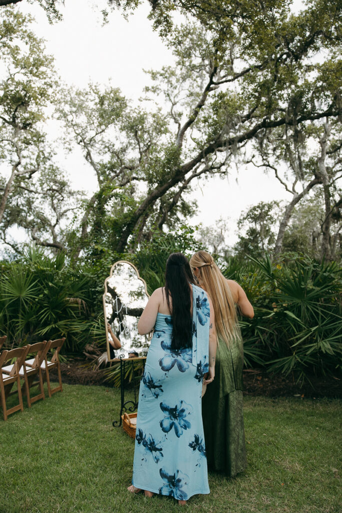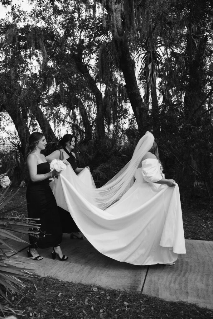Humidity hung heavy in the Florida September air, clouds blanketed the sky and the salty smell of the sea was ever present. Daphne was spending time with her girls and getting the tail end of her makeup done as I opened the door to the bridal suite at Oyster Bay Yacht Club. The sun made faint appearances through the large windows that lined the room.