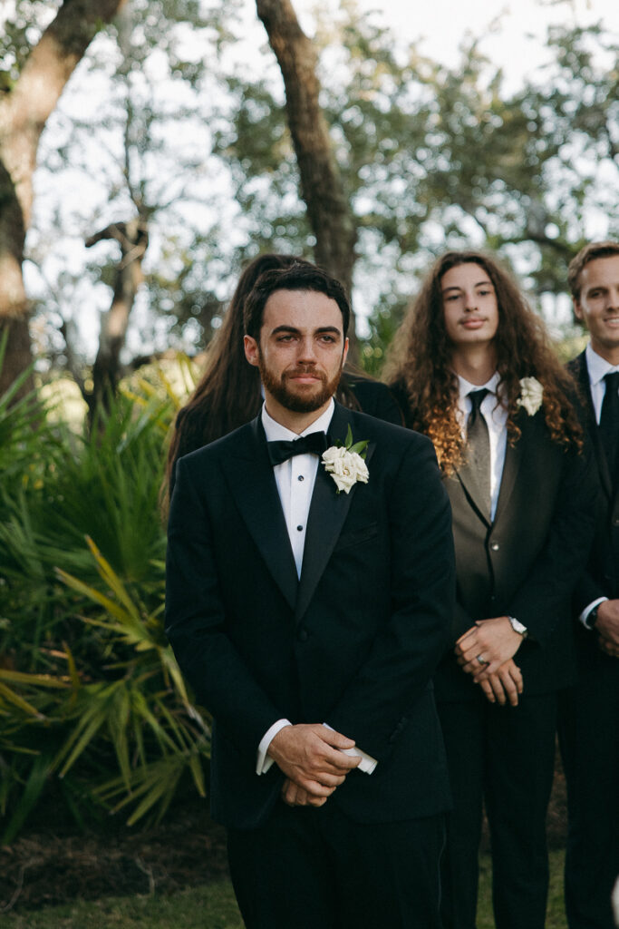 Peter made his arrival to Oyster Bay Yacht Club shortly after, dressed and ready for a few solo portraits of himself before him and Daphne shared their first look together.
