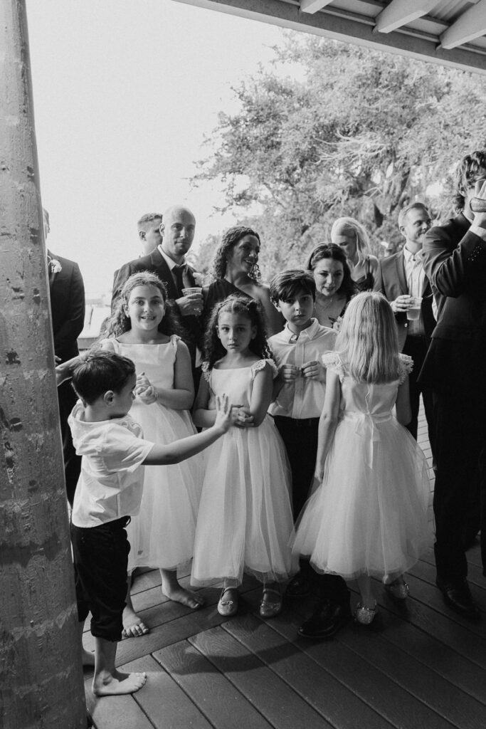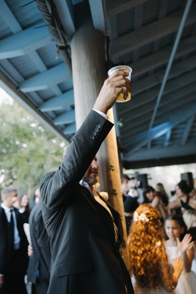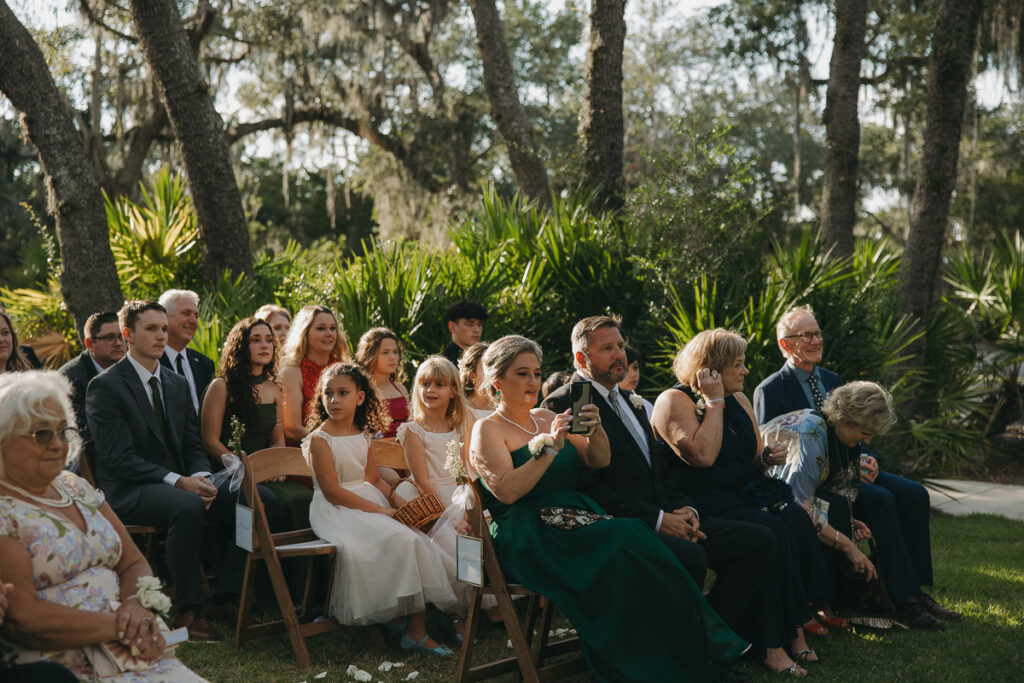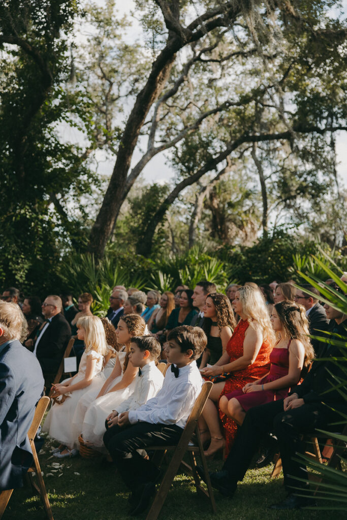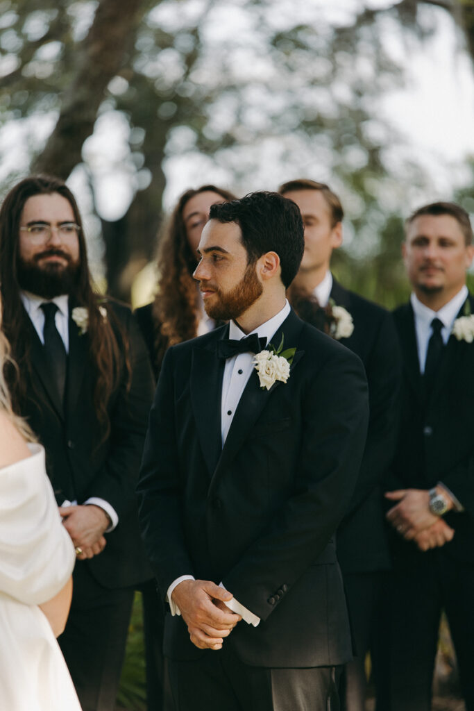 After we took full bridal party photos, it was finally time for their ceremony. Guests began to arrive at Oyster Bay Yacht Club via trolley service. They poured out in troves, making their way toward the ceremony space in their best suits and dresses. The excited energy was palpable.